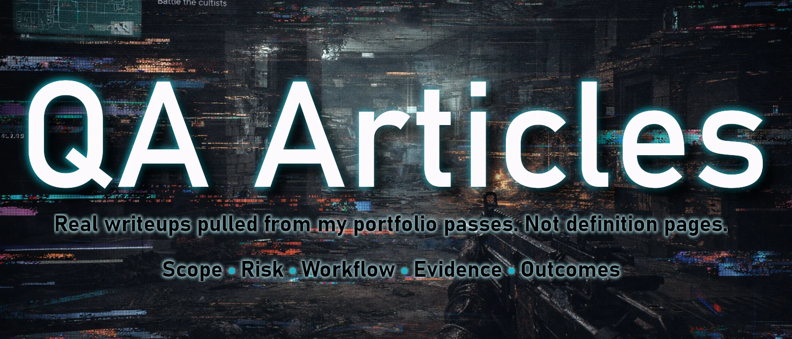 Method-first game QA guides: how I scope, test, capture evidence, and report issues across functional, exploratory, and regression passes. More topics coming, including VR comfort/accessibility, XR learning, controller parity, narrative/localisation QA, and early automation.