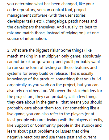 - Keep the suite maintainable so each check traces directly back to either a patch-note change or a genuine risk area instead of becoming a full re-test of the entire game.